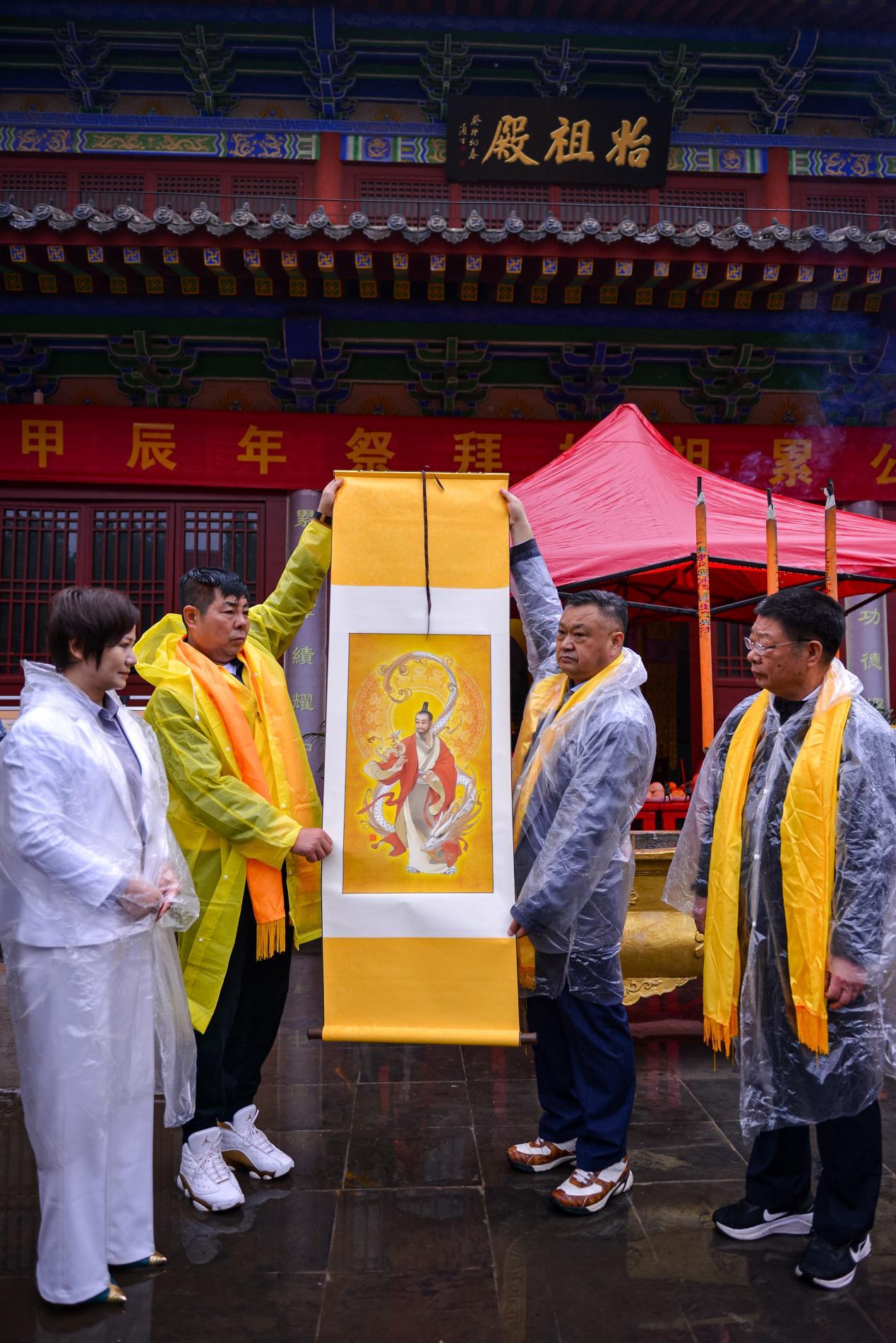 2024年4月19日,甲辰年中华刘氏宗亲拜祖典礼在位于平顶山鲁山县库区乡境内的中华刘姓始祖苑隆重举行。图为典礼活动现场平顶山刘氏文化研究会副会长刘晓林女士敬献由南开大学东方艺术系主任张旺创作的“刘氏始祖累公画像”。