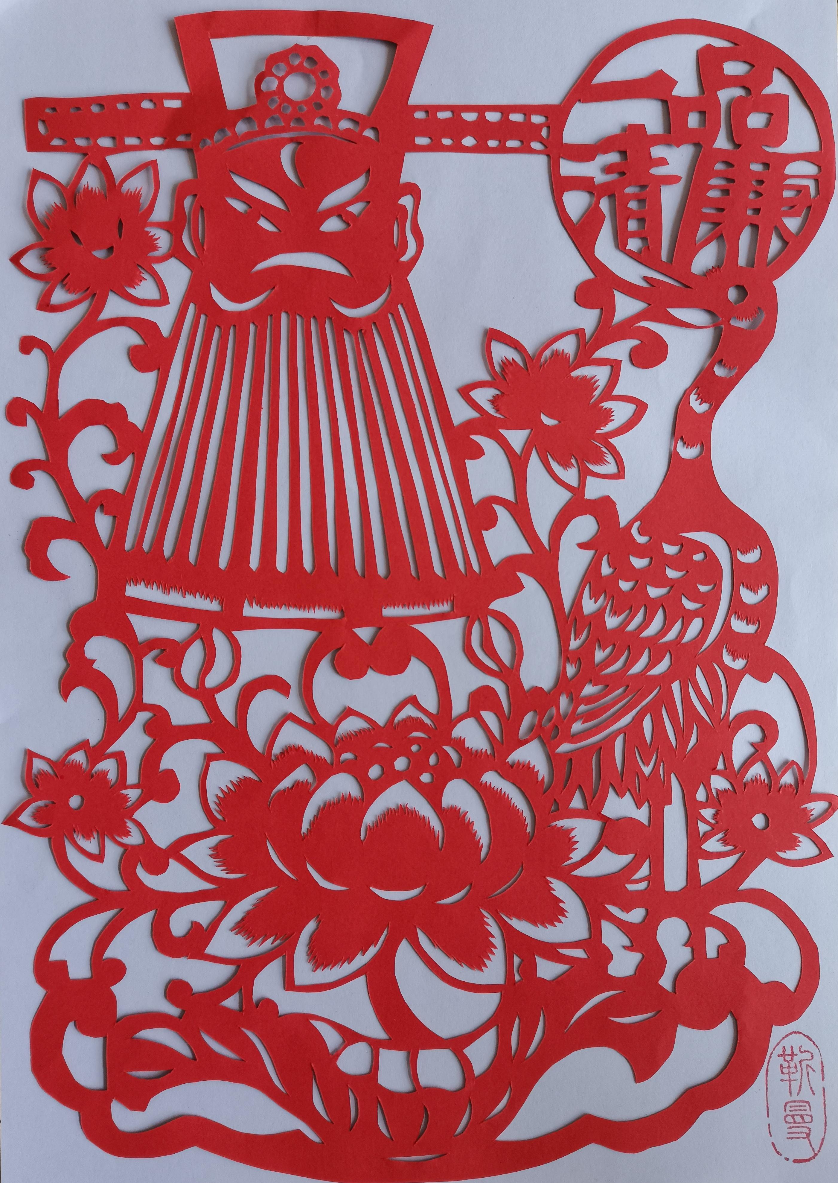 在这个物欲横流的社会,清廉如同一盏明灯,照亮我们前行的道路。它提醒着我们要保持内心的纯洁和正直,不为名利所惑,不为权势所屈。它让我们在浮躁的世界中找到一份宁静,一份坚守。 剪纸中的图案,是一位清官和莲花的形象。以简洁而生动的形式,传递着清廉的精神内涵。莲花的纯洁,清官的正直,无不展现出人们对清廉的敬仰和向往。