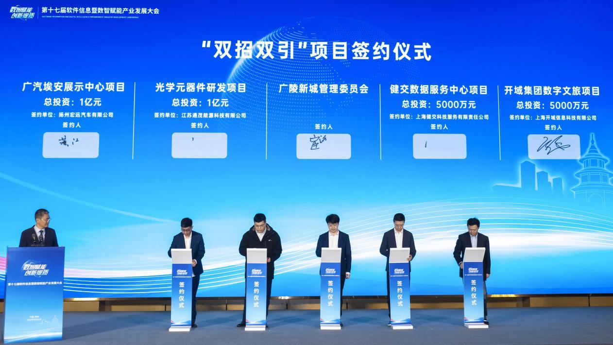 拥抱数字经济“新蓝海”,谱写“数实融合”新篇章。4月21日上午,第十七届软件信息暨数智赋能产业发展大会(以下简称:大会)在扬州市举行。扬州市副市长盛卫中出席活动并致辞。广陵区人大常委会主任赵长松、区政协主席王峰、市发改委副主任孙景亮、市科技局副局长卞加林、市工信局副局长许亚军、市商务局副局长张军、市大数据局副局长金立豪、中国人民银行扬州分行副行长蔡定洪、扬州市交通产业集团副总经理龚宇峰、扬州大数据集团有限公司副总经理何玮文出席活动。区委副书记李斌在活动中致辞。区委常委、常务副区长王飞飞作广陵区主题推介。区委常委、组织部部长杨勇等出席活动。活动由副区长、广陵新城党工委书记刘兵主持。