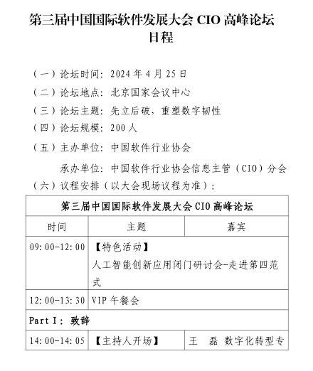 中国网4月25日讯 第三届中国国际软件发展大会CIO高峰论坛于4月25日在北京国家会议中心举行,论坛以“先立后破,重塑数字韧性”为主题,聚焦AI等新技术、数据赋能、场景驱动,CIO如何在更严苛的环境中开展工作进行交流。