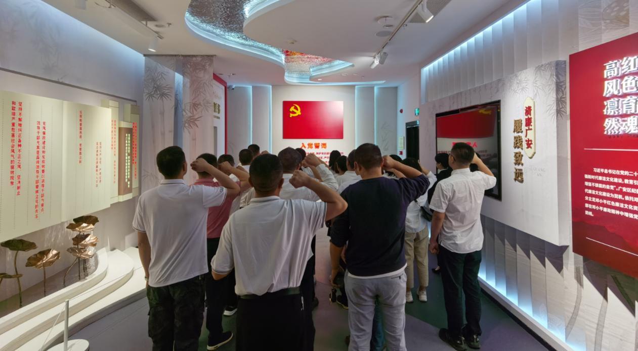 参观教育结束后,大家在街道党工委副书记、办事处主任肖华的带领下,面对党旗庄严宣誓,重温入党誓词,用铮铮誓言诠释对党的绝对忠诚,对党表达了坚定的信念和忠诚履职尽责的决心。