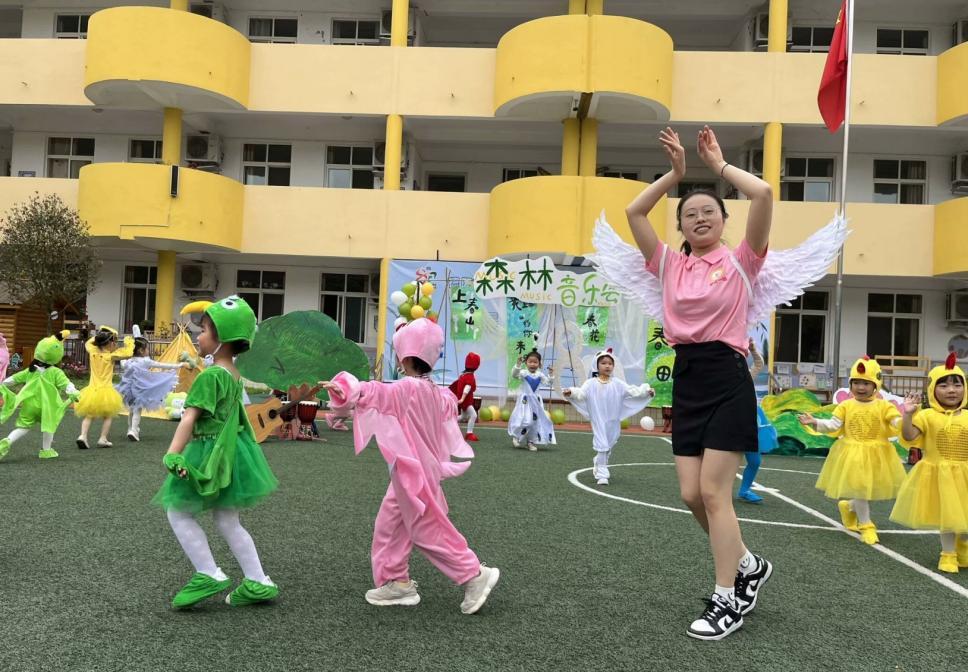 文艺汇演中老师和孩子们载歌载舞,送上对幼儿园最真诚的祝福,让节日的校园热闹非凡。