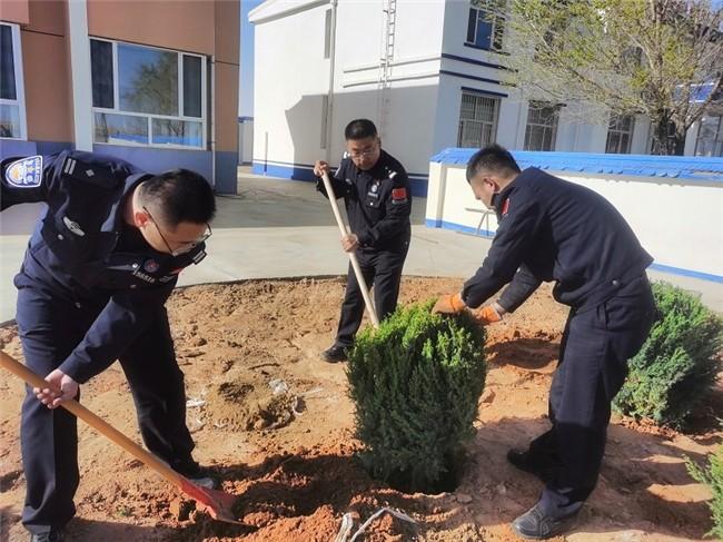 为进一步加强营区绿化建设,积极营造拴心留人、和谐舒心的良好生活环境,5月1日至5月5日,巴音温都尔边境派出所组织民辅警在营区种下30余株灌木,为营区增添了“一抹绿”。