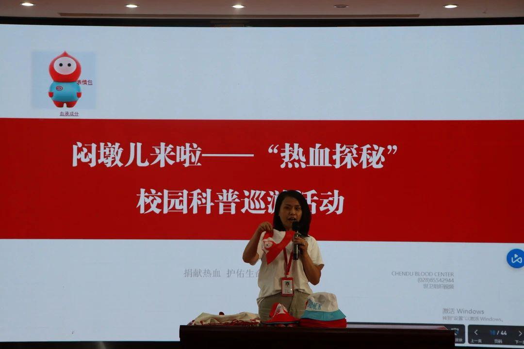 活动伊始,成都市血液中心可爱的吉祥物闷敦儿登场,赢得孩子们热烈欢呼。杜老师揭示本次讲座的主题——热“血”探秘,孩子们带着满满的期待参加活动。