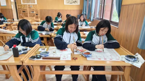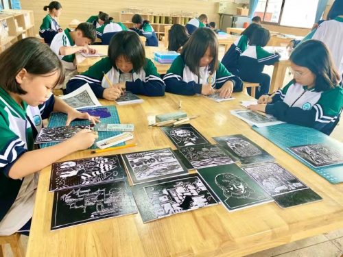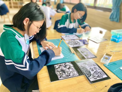 篆刻社团的同学们则是手握刻刀凝神定气、一丝不苟……