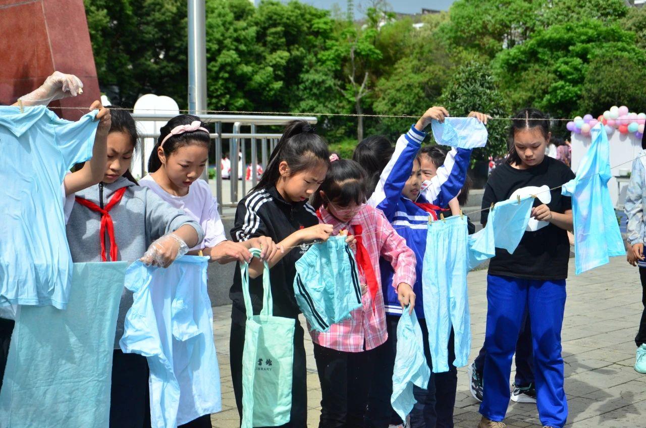 劳动周展评活动现场,四年级组学生开始巧手做拖把。制作过程中,小工匠们分工明确、配合默契,将生活中的废旧材料变成了一个个优秀的作品。一个个成功的作品各具特色,一把把实用美观环保的拖把,展现了孩子们的匠心独运。