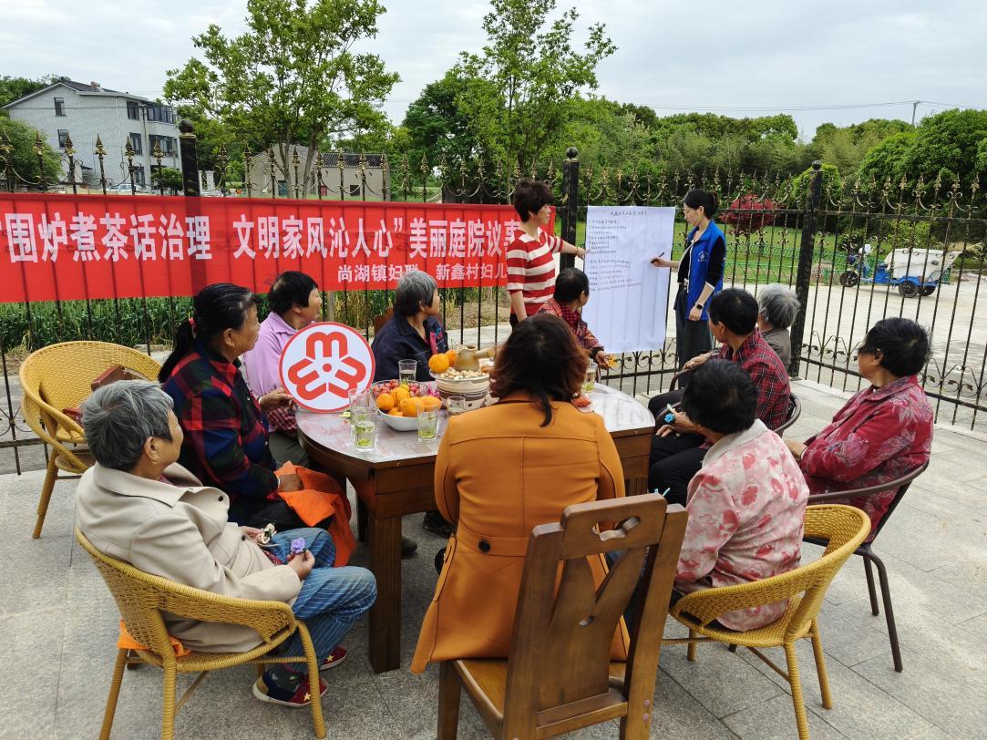 4月25日下午,在尚湖镇妇联的领导下,新鑫村妇儿之家联合流水琴川和爱社会工作发展中心走进新鑫村美丽庭院女主人钱妹芳家庭,开展“围炉煮茶话治理 文明家风沁人心”美丽庭院主题议事会,妇女代表们通过庭院煮茶唠家常,聚焦美丽庭院建设,共话文明家风。