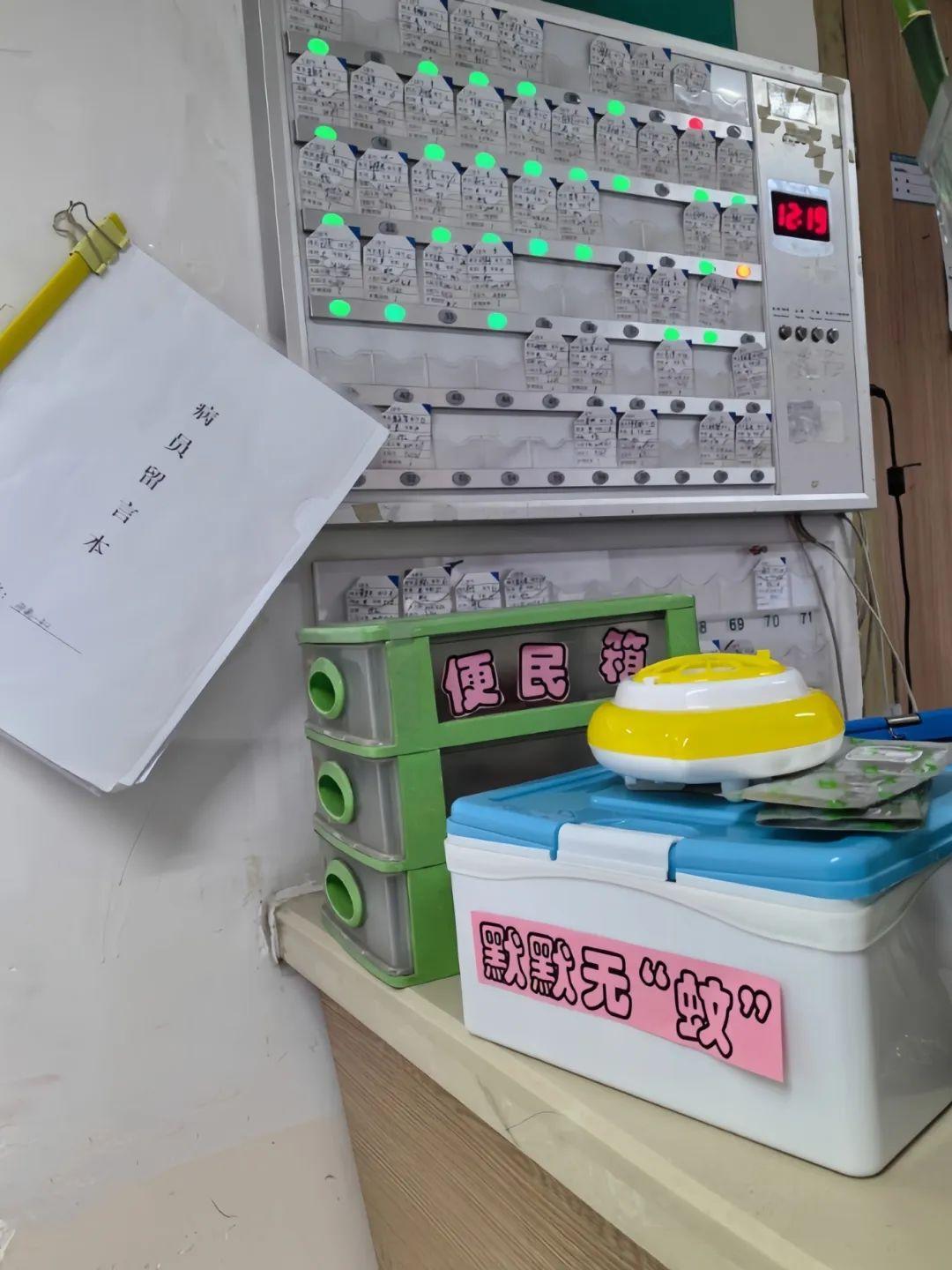 病房始终坚持“六点”服务理念,以微笑、礼貌、理解、耐心、话语柔、效率高为原则,积极营造整洁温馨的就医环境。用情提高患者的就医体验,切实提高患者就医获得感、幸福感。病房配备了便民服务箱,针线盒、吹风机、老花镜、指甲刀等物品,方便患者及家属使用。另外,还放置了“应急糖果”,以防新入院患者在空腹采血时出现低血糖反应。根据夏季需求,病房备有灭蚊器,免费提供灭蚊片,让患者度过默默无“蚊”的舒适夜晚。