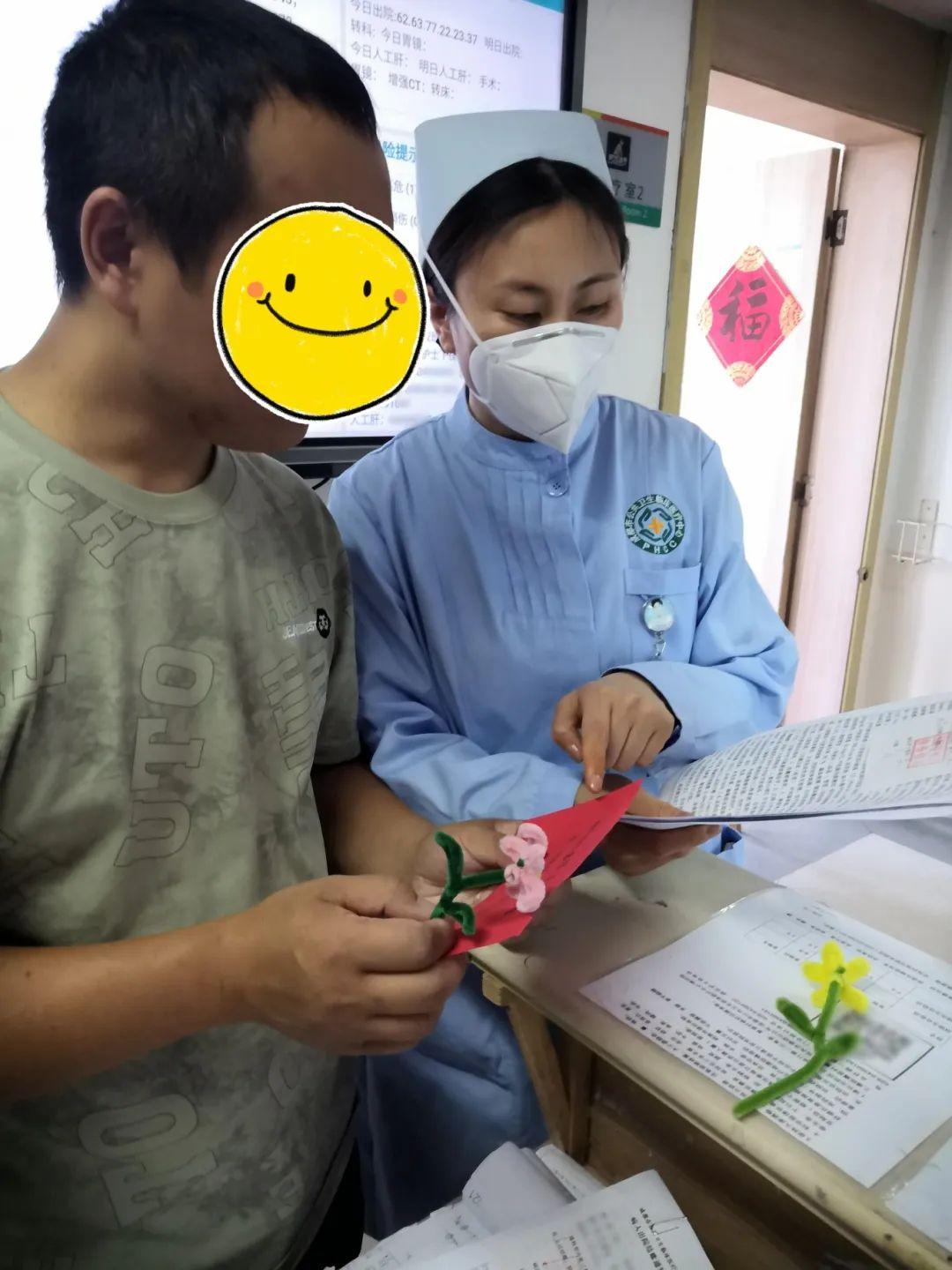 为弘扬劳动精神,改善患者的生活质量和精神面貌,增强患者与医护人员间的情感交流,培养患者的创造力和生活技能,肝病一科在人文关怀理念的指导下,开展春节剪窗花、5·1劳动节扭扭棒制作等多种形式手工活动,旨在让患者在参与手工制作的过程中感受到生活的乐趣,增强自我认同感,同时也为医护人员与患者搭建一个交流互动的平台。