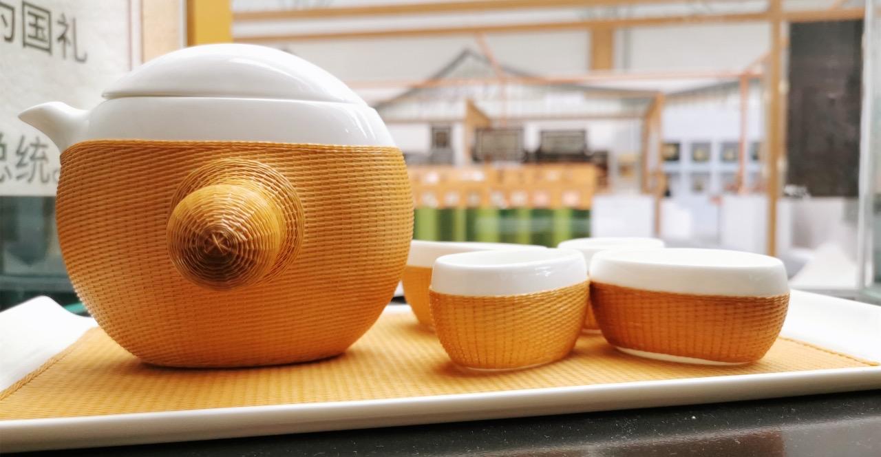 据悉,青神竹编历史悠久,技艺精湛,有平面竹编、立体竹编、瓷胎竹编三大系列。茶博会上,青神县的主要参展产品有瓷胎竹编茶具、餐具,竹茶,平面竹编、竹纸、竹灯笼等。其中,瓷胎竹编茶具是在光洁的瓷器外面,用竹丝编织而成的一种特色工艺品,在选材和制作工艺上都颇有讲究。