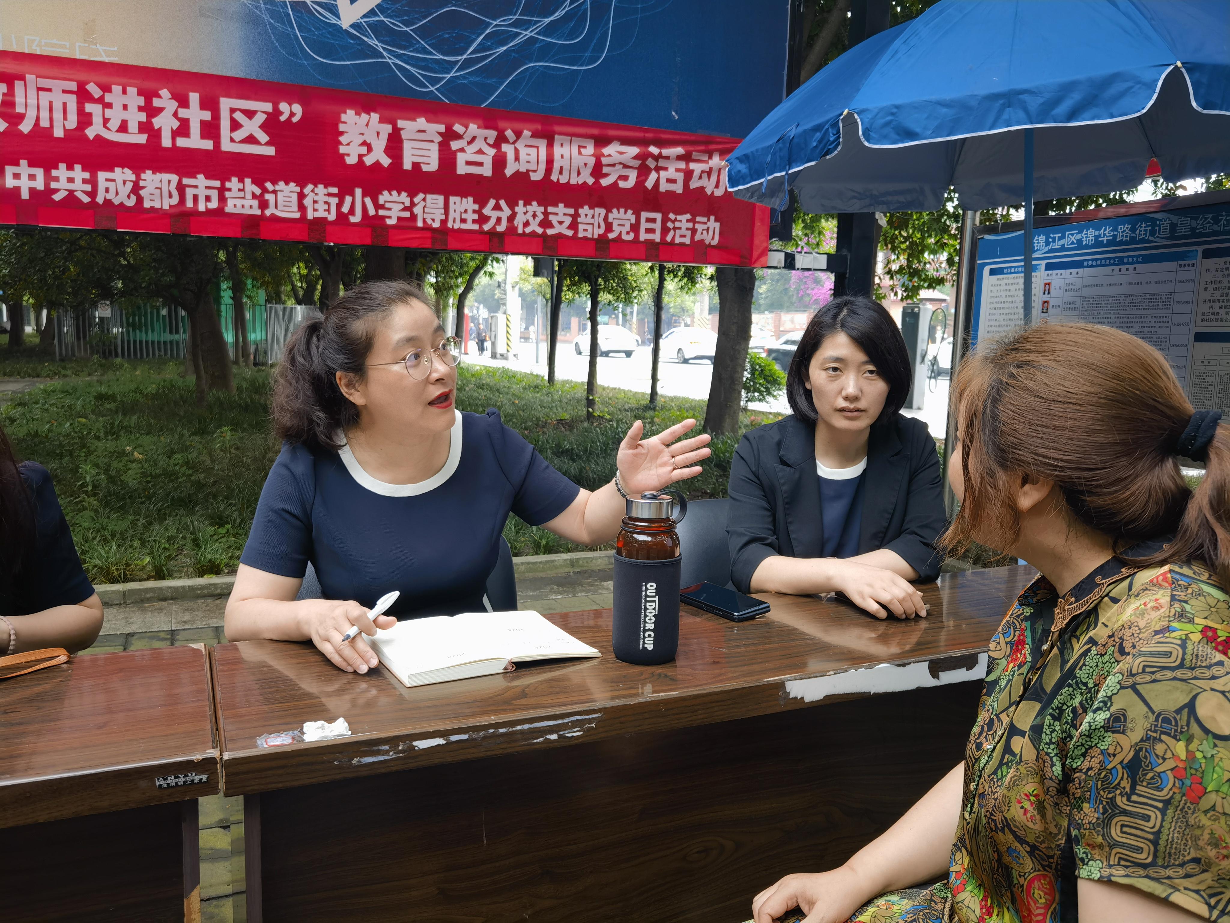 为积极发挥党员先锋模范带头作用,主动加强党支部与社区之间、党员与社区之间的联系,切实提升群众满意度,实现家、校、社的良性互动,2024年5月7日上午,中共成都市盐道街小学得胜分校支部扎实有效地开展了“千名党员教师进社区”教育咨询服务活动。学校党员教师在锦江区皇经社区党群服务中心设置咨询点,对社区居民关注的教育问题进行现场一对一的答疑解惑,实现教育咨询服务“零距离”。