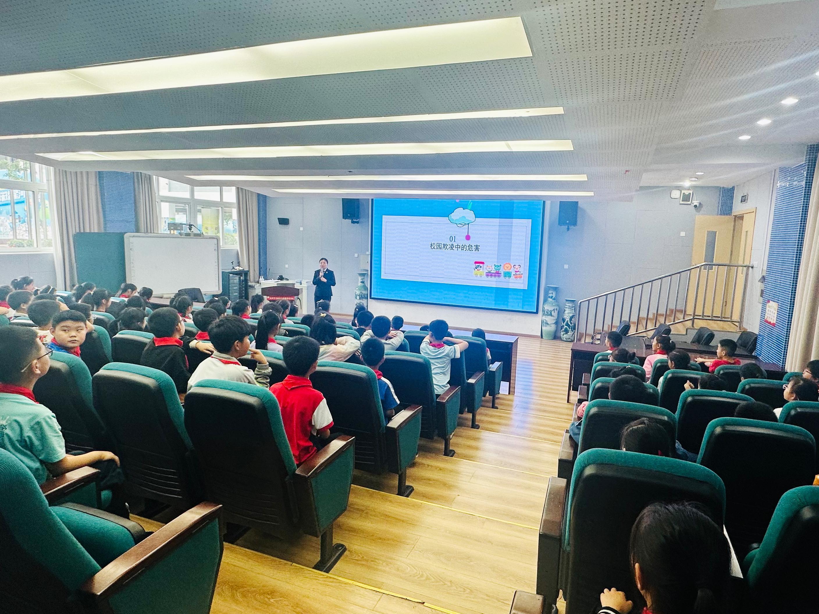 为进一步增强学生的法律意识,预防校园欺凌事件发生,建设平安校园,近日,成都市天涯石小学昭忠祠分校特邀法治副校长、锦江区人民检察院赵美琦检察官走进校园,面向四年级学生开展“勇敢向校园欺凌说不”法治教育专题讲座。