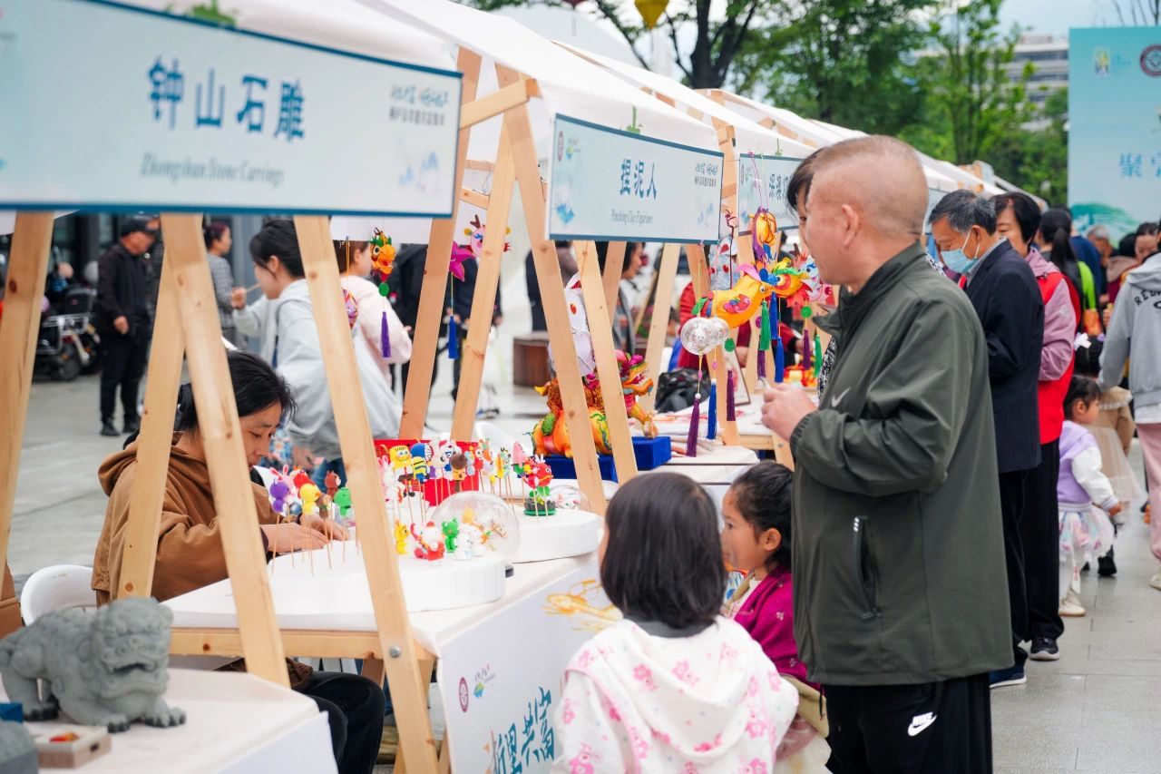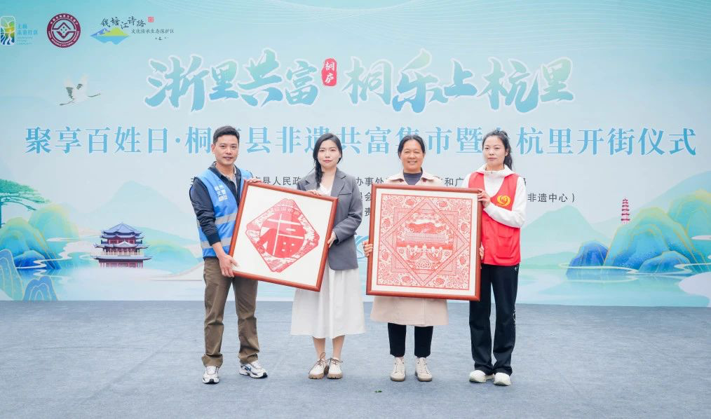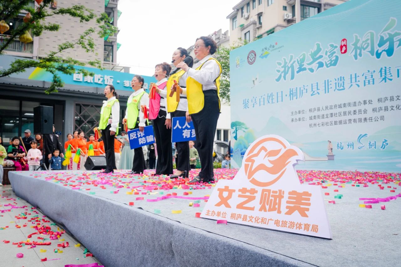 刚刚过去的“五一”,很多市民选择了出门休闲,而在桐庐县上杭未来社区,更多居民则是“驻家”嗨——家门口的非遗共富市集让这个未来社区人气满满。由桐庐县人民政府城南街道办事处和桐庐县文化和广电旅游体育局主办,桐庐县文化发展中心(文化馆、非遗中心)和城南街道龙潭社区、杭州七彩社区数据运营有限责任公司承办的上杭未来社区“浙里共富,桐乐上杭里”桐庐县非遗共富集市暨上杭里开街仪式在上杭里街区举行。本次市集将持续三天,市民和游客在“五一”假期里探索非遗韵味,感受传统文化的魅力。