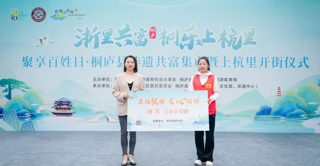 文化引领,多方共建。在上杭未来社区共享书房中,居民们度过了许多美好的阅读时光,全民阅读、非遗体验等文化活动仅百场。为继续营造全民阅读的良好氛围,桐庐县图书馆鼎力支持上杭未来社区,为上杭未来社区共享书房捐赠3000册图书。同时桐庐县文化发展中心携手省级非遗传承人刘莲花老师向上杭未来社区捐赠非遗剪纸作品捐,为丰富辖区内居民的文化生活,发扬并传承桐庐非遗文化增添助力。
