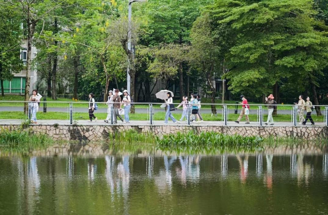 “下雨反而让这次徒步体验变得更加难忘。这里环境很好,植物丰富,看得出环保措施很到位,很适合生活。”市民杨女士撑伞眺望着湖面笑言。
