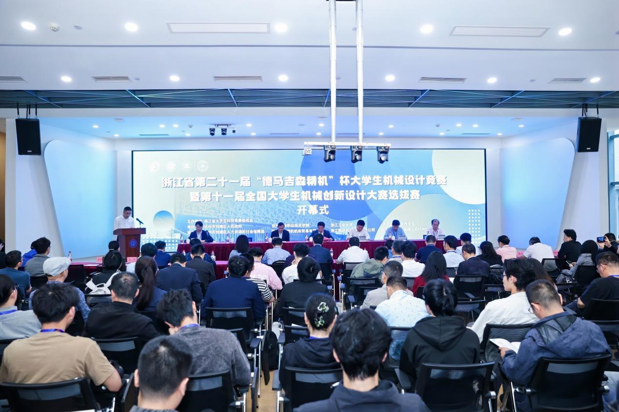 5月10日至12日,浙江省第二十一届“德马吉森精机杯”大学生机械设计竞赛暨第十一届全国大学生机械创新设计大赛选拔赛在位于杭州市钱塘区的杭州科技职业技术学院大江东校区举行。本次竞赛由浙江省大学生科技竞赛委员会主办,杭州市钱塘区人民政府、浙江工业大学、浙江省机械工程学会、杭州科技职业技术学院、杭州市乡村振兴学院联合承办,杭州市钱塘区人力资源和社会保障局、德马吉森精机机床贸易有限公司、浙江凯达机床股份有限公司、长安福特汽车有限公司杭州分公司等单位协办,来自浙江大学、浙江工业大学等54所高校的456支参赛队伍同台竞技,是近几年规模最大的一届。