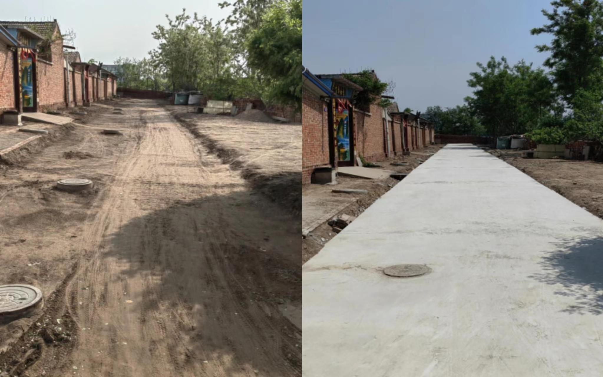 强化质量监督是保障工程质量的重要手段。两个村建立了严格的质量监督机制,成立了质量监督小组,对施工过程进行全程监督,确保各项工程符合标准和要求。工作组和村“两委”班子严格按照规划要求,配合专业的施工队伍进行施工,并在施工过程中,开展灰土质量、厚度及路面宽度等项目检测,督促施工方严格控制质量,严格把关每一个环节,及时发现和解决问题,确保每一个工程都符合标准,工程质量经得起时间检验。掘河店村发现一条主干街道水泥路灰土层质量不达标,立刻要求立即停止路面硬化施工,要求灰土层达标后才能恢复施工。刘山庄村在胡同里巷硬化后发现个别点位存在积水现象,立即联系施工方要求返工,直到排水流畅。