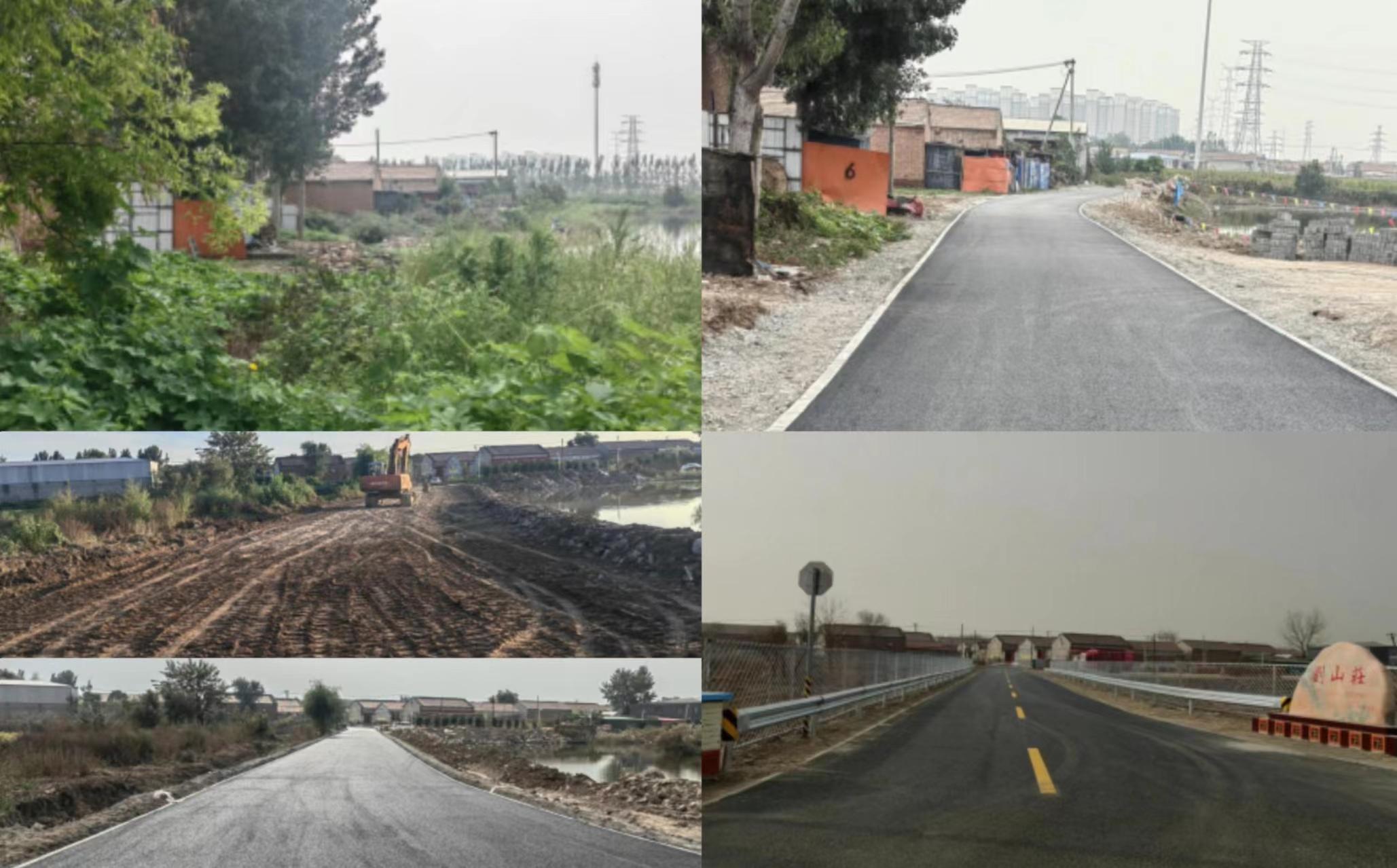 早在2022年春,掘河店村就如火如荼启动了1400米环村U型公路建设,当年10月份顺利完成建设。2023年下半年,掘河店村完成村南、村西550米干道翻建、新建工程,形成村庄环形公路,特别是打通了村西交通盲区。同年,刘山庄村完成进村、环村干道1200米,原有4米宽进村道路拓宽至6米,极大方便群众出行。乡村公路完成修建后,在坑塘水面路段安装波形安全护栏500余米。