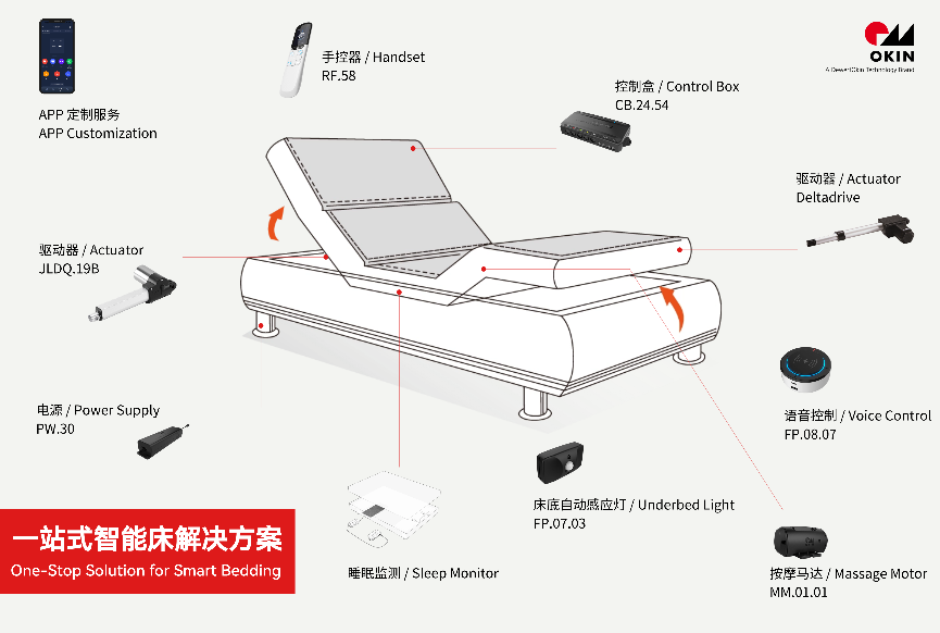 作为全球线性驱动技术巨头,德沃康旗下品牌德国OKIN专注对电动铁架重要部件的研发与创新,聚焦产品力,细分多人群、覆盖多场景,延展产品技术组合捕捉不同人群需求。