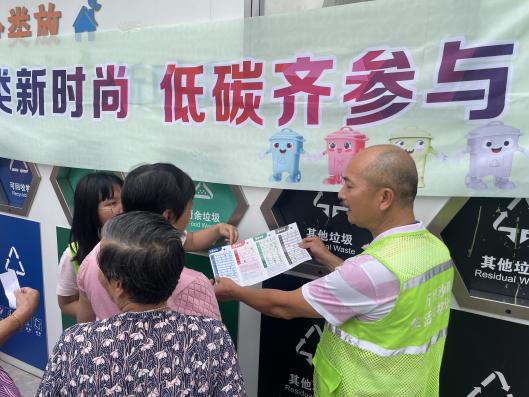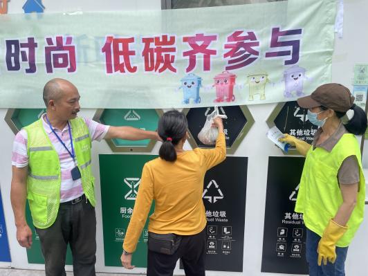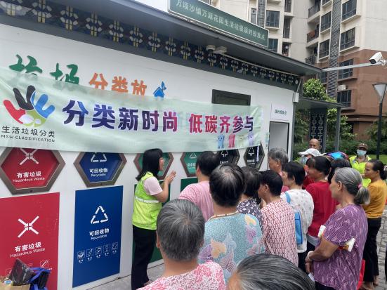 为推进生态文明建设,提高居民环保意识,5月27日,万顷沙镇在万源花园误时投放点开展以“分类新时尚 低碳齐参与”为主题的垃圾分类宣传周活动,倡导绿色生活,活动吸引了众多居民群众的参与。