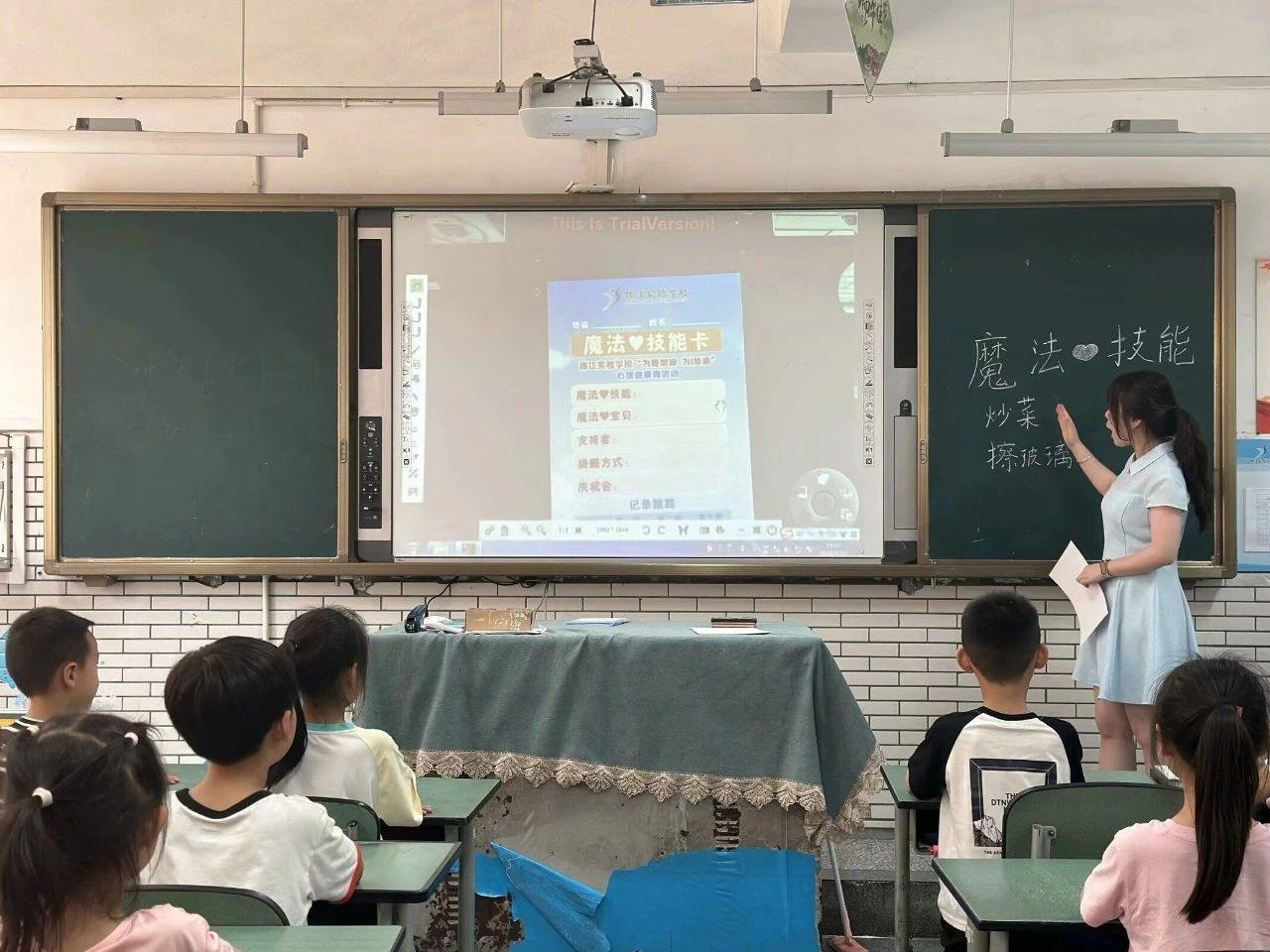 一年级小朋友制作五颜六色的快乐风车送给六年级的哥哥姐姐,表达毕业祝福;二年级的孩子们在老师和爸爸妈妈的帮助下,填写“魔法技能卡”,让大家充分认识自己,了解自己,并让自己变得更好。