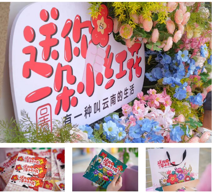 “送你一朵小红花”主题文创系列是呈贡斗南花卉产业文旅融合发展的“二次元”探索,目前已设计7种不同风格的小红花造型,它们将陆续出现在钱包、笔记本、书签及雪糕等文创产品上。