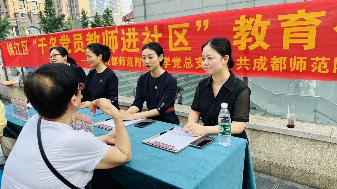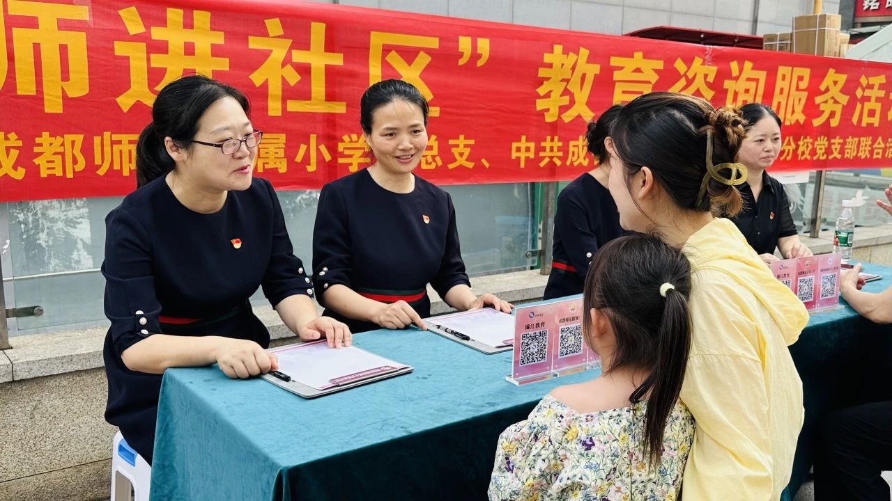 为积极响应锦江区教育局“千名党员教师进社区”活动号召,充分发挥党员教师的先锋模范作用,提升教育服务水平不断增强群众对教育的满意度,构建家校社协同育人共同体,日前,成都师范附属小学学道校区党支部和成都师范附属小学三圣分校党支部携手同行,与锦江区三圣街道白桦林社区联合开展“党员教师进社区 教育服务零距离”教育咨询服务活动。