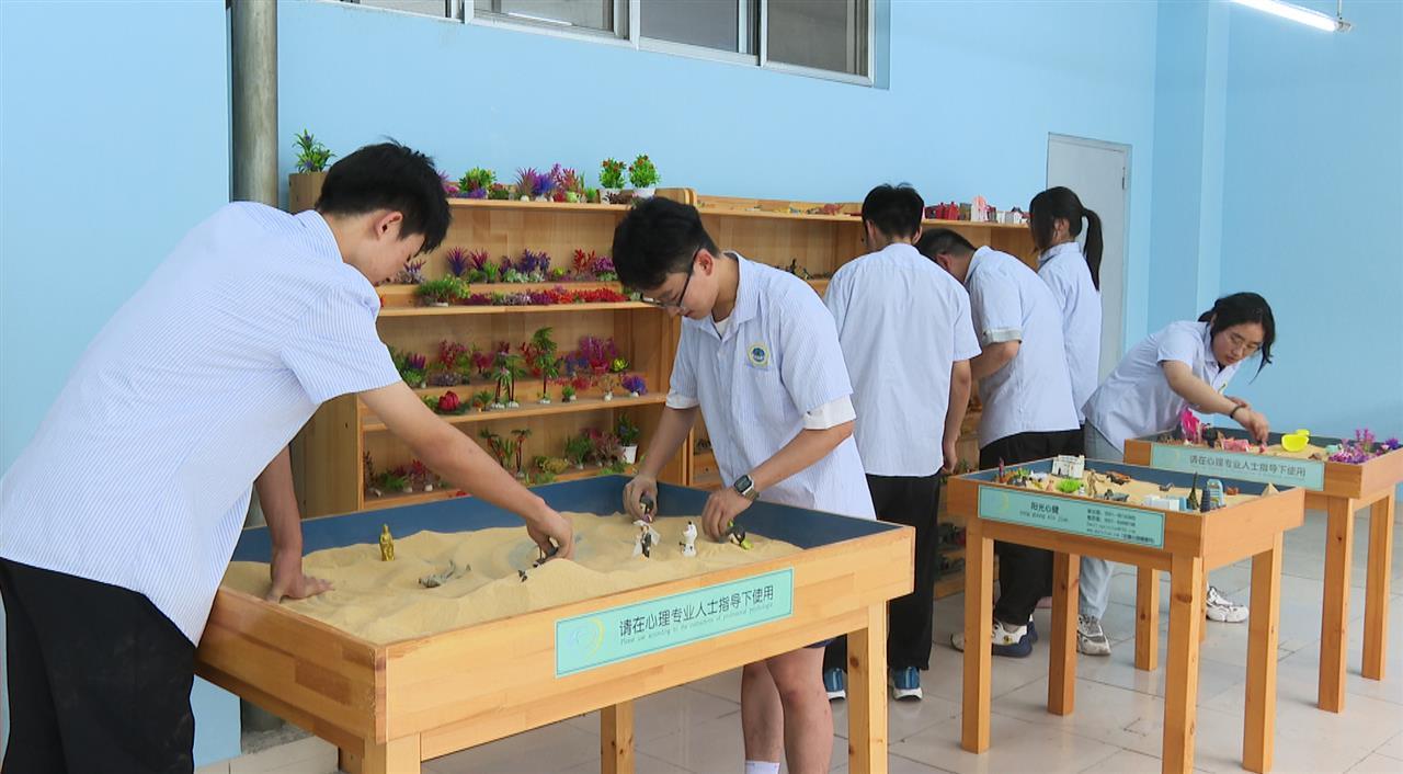 在德阳中学的学生心理成长中心,个体咨询室、沙盘室、宣泄室、各类解压玩具一应俱全,学校的专职、兼职心理老师定期开展心理专题讲座,为学生和家长进行考前心理辅导、心理减压训练和高考心理辅导微课等,疏导学生和家长情绪,提供科学备考建议,鼓励学生以轻松、乐观、自信的心态迎接高考。