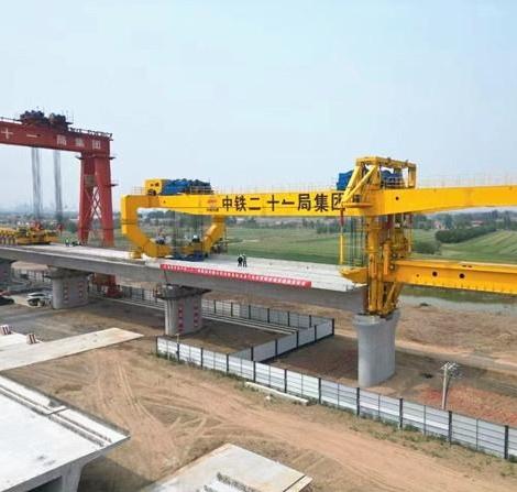 近日,中铁二十一局津潍高铁东营制梁场创新应用了桥面附属设施与箱梁一体化架设工艺,一榀长32.6米、重725吨的箱梁精准平稳地落在滨东黄河特大桥953号至954号桥墩上。