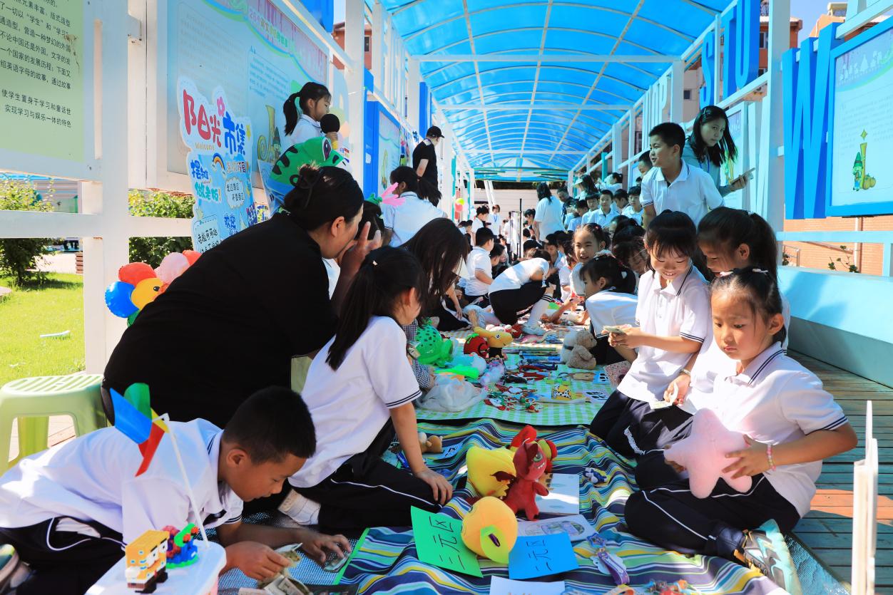 为深入贯彻落实“五育并举”教育方针,全面发展学生素质教育,丰富同学们的校园生活,落实立德树人、以劳育人的教育理念,弘扬中华民族传统美德。 2024年5月31日白家庄小学东辰分校本部校区组织开展了“旧物爱循环 萌娃乐分享”庆六一首届“阳光”市集活动,旨在培养学生良好的语言表达能力、数学计算能力、组织沟通能力、团结协作能力。同时,以旧物新用为契机,让学生学会体谅父母,尊重劳动成果,合理花钱,健康理财,养成良好的绿色低碳环保意识。