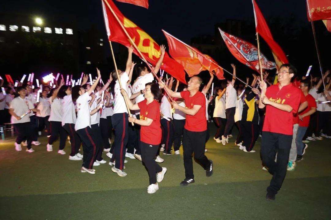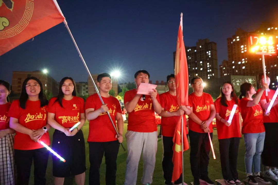 活动现场,所有高三老师身穿红色战袍围成一个圆,寓意24高考圆圆满满,二中学子们圆梦二中,圆梦未来!随后,各班班主任在校领导的带领下高举班旗,绕场两周,为所有的二中学子带来最衷心的祝福和鼓励,旗帜所到之处,激情燃爆全场,同学们为班旗欢呼,为自己喝彩,为班主任喝彩,二中学子用青春誓言,表达内心的宏愿和对未来的追求!