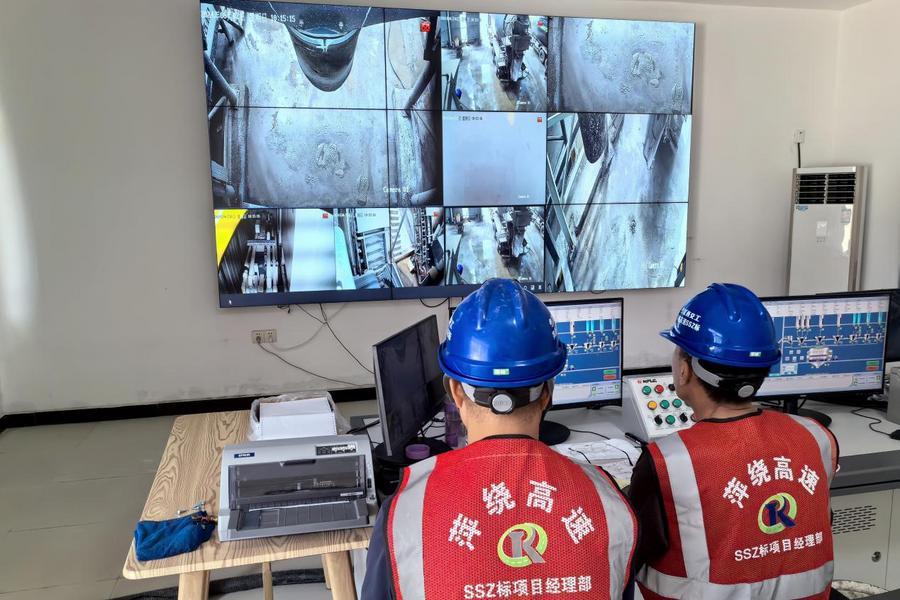 在全线推广使用混凝土拌和厂数字化生产管理系统,使搅拌站有了“大脑中枢”,可以对整个场站起到全方位数字化展示及生产运营智慧化管理的作用。材料用量、拌和时间、材料配比等工作交由数字系统执行,生产效能显著提高,实现了原材料精准配比、混凝土交付等全流程的智能化质量管控模式,减少人为干预存在的误差。生产混凝土因为有了“智慧大脑”,误差能控制在0.2%内,目前达到了零误差。