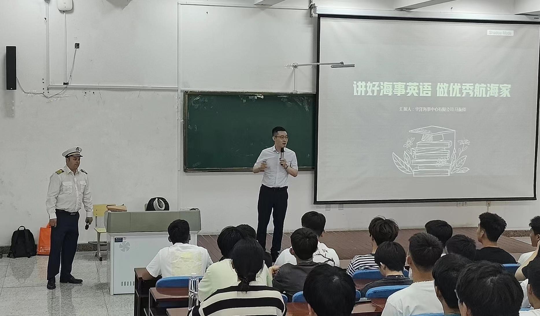 为激发航海类学生学习海事英语的热情,强化海事英语在教学培养中的重要地位,2024年6月5日,华洋海事中心有限公司劳务事业部船员服务部经理马振铎和资深海事英语培训专家Matthew(马修)老师于渤海大学滨海校区文科楼为广大同学带来了一场题为《讲好海事英语·做优秀航海家》的学术讲座。