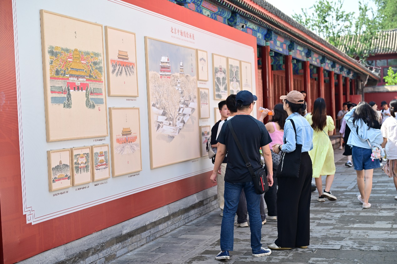 由北京中轴线文化遗产传承与创新大赛组委会组织的“中轴线创意市集”于6月8日至13日全程亮相“白塔文化周”文化市集。中轴线市集分为展览展示和文创展售两部分,展览展示区遴选了前三届中轴线大赛的优秀摄影作品和著名画家郑山麓老师的中轴线主题系列画作,让观众通过艺术家们的镜头和画笔去领略中轴线的壮美。文创展售区则集结了刻意工坊、正阳书局、插客中国、文旺阁等与中轴线大赛深度合作的文创企业,这些企业依托自身的资源优势对中轴线丰富的文化元素进行了充分发掘,带来了各式各样、精心创意设计的中轴线文化衍生产品:印制精美的中轴线文创护照、中轴线主题图书、中轴线建筑的木质拼插模型等,让来到市集的观众在“赏中轴”的同时,还能把中轴线“带回家”。