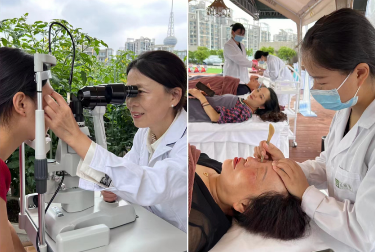 眼科专家医生及眼部健康老师为市民做免费眼部健康检查及体验