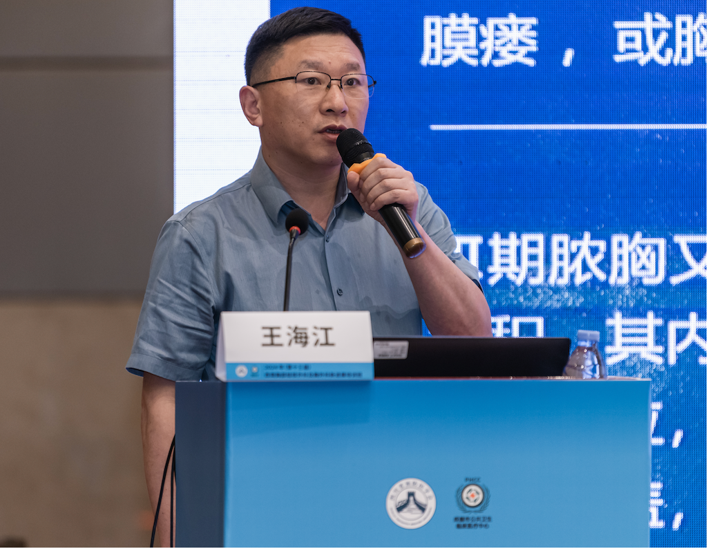 第四节学术环节以结核性脓胸微创治疗新进展为内容。上海市肺科医院周逸鸣教授、深圳市第三人民医院王海江教授及成都市公共卫生临床医疗中心姚晓军教授分别就《结核性脓胸的多学科微创治疗》《单孔胸腔镜胸膜剥脱治疗III期结核性全脓胸》《III期结核性脓胸微创手术与疗效评价》作专题报告。报告带来了精彩的手术病例展示,同时提出新概念、倡导新模式,且首次提出“胸廓塌陷指数”。