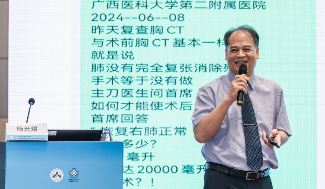 第三节学术环节围绕胸部器官瘘治疗策略展开。广西医科大学第二附属医院杨光煜教授、重庆市公共卫生医疗救治中心冯建雄教授及遵义医科大学附属医院陈成教授先后作《胸部器官瘘疾病外科治疗杨氏方法》《气管瘘的内镜介入治疗》《支气管胸膜瘘的多模式治疗策略分享》专题汇报。汇报分享了典型病例及临床治疗的思路方法,为临床实践提供了宝贵经验。