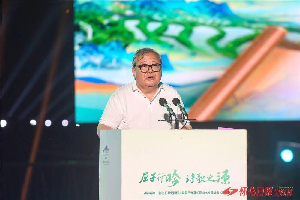 吉狄马加在讲话中说,2300年前,中国诗歌史上最伟大的浪漫主义诗人屈原在溆浦写下了《涉江》《离骚》《九歌》《天问》《橘颂》等经典诗篇。2300年后的今天,怀化举办屈原爱国怀乡诗歌节,既是向中国诗歌的鼻祖屈原致以深深的敬意,也是对中国古典诗歌的传承发展。近年来,怀化市委、市政府在加快经济发展的同时,着力推动中华优秀传统文化创造性转化、创新性发展,让诗歌走进群众生活,为助推中国诗歌繁荣发展做了大量工作。希望更多的诗人走进怀化,走进溆浦,了解这片培育了屈原等文学大家的厚重土地,书写出新时代的优秀诗歌。