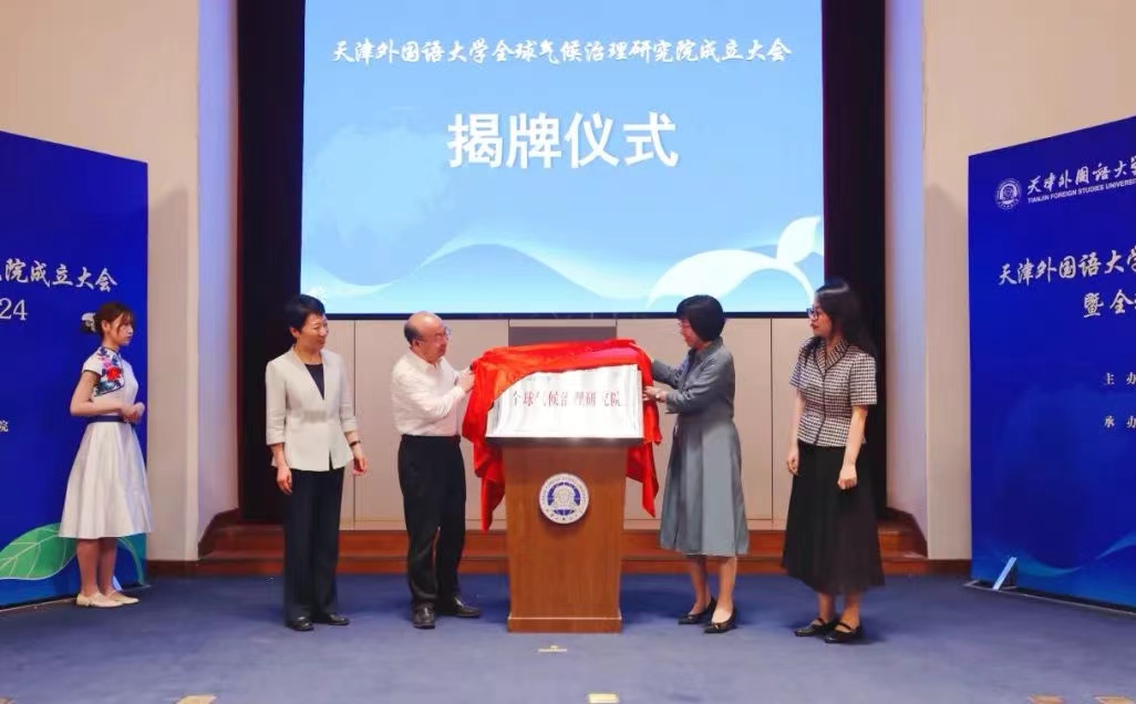 会上,与会领导共同为天津外国语大学全球气候治理研究院揭牌。