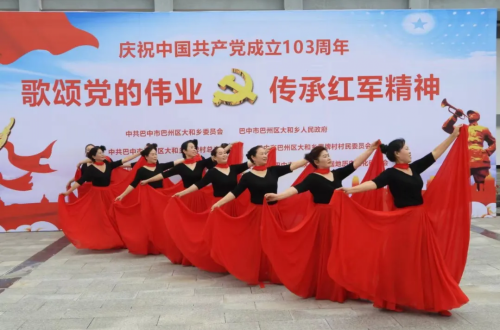 巴中市巴州区大和乡党委、乡政府,组织的庆祝建党103周年活动现场