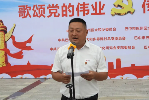 2024年6月26日上午9时许,由巴中市巴州区大和乡党委、大和乡人民政府主办的,大和乡界牌村党总支、界牌村村民委员会,巴中市川陕革命根据地历史文化研究会党支部及研究会联合承办“庆祝中国共产党成立103周年,歌颂党的伟业、传承红军精神”纪念活动,在四川省巴中市巴州区大和乡界牌村隆重举行。