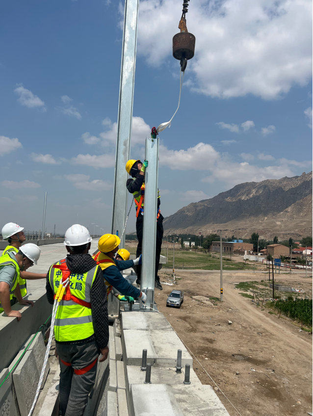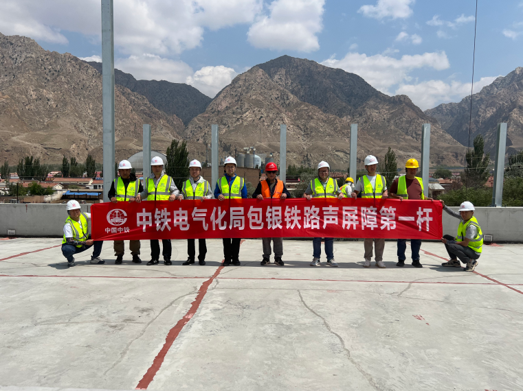 6月30日,在包银铁路施工现场,铁路声屏障工程“第一杆”钢支柱稳稳立好,这标志着中铁电气化局承建的包银铁路声屏障工程正式开工。