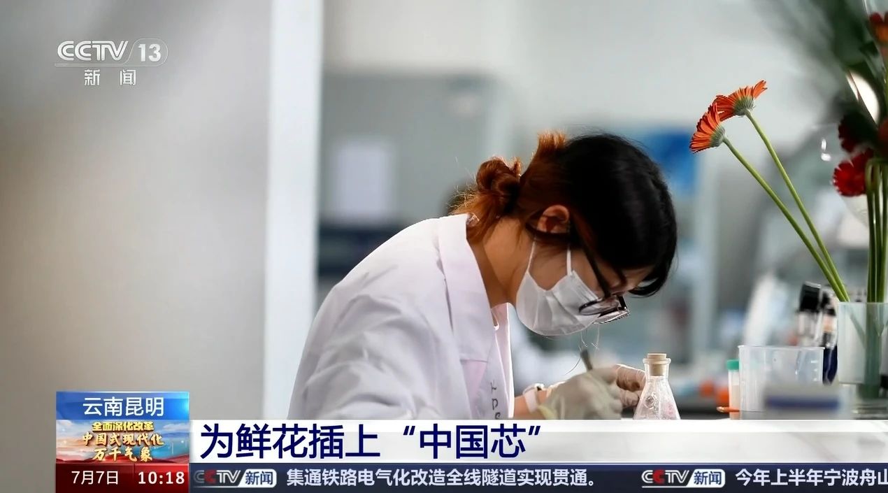 在昆明市呈贡区的国家观赏园艺工程技术研究中心共享实验室,研究员正在借助分子生物技术对鲜花进行基因种育,通过基因编辑技术,为这里的鲜花插上“中国芯”。