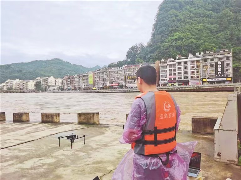 水文监测人员用无人机测流。(贵州省水文水资源局供图)