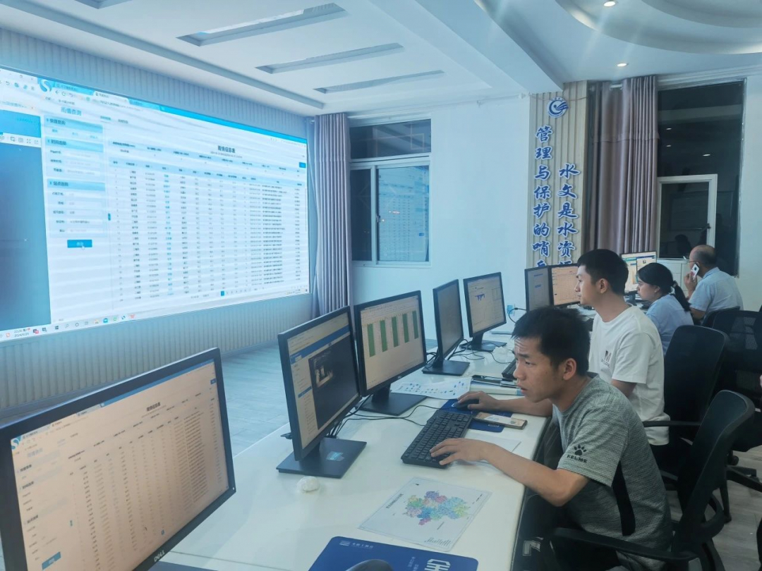 6月29日,黔东南州水文水资源局水情信息中心值班人员密切关注水情动态。杨治富 摄