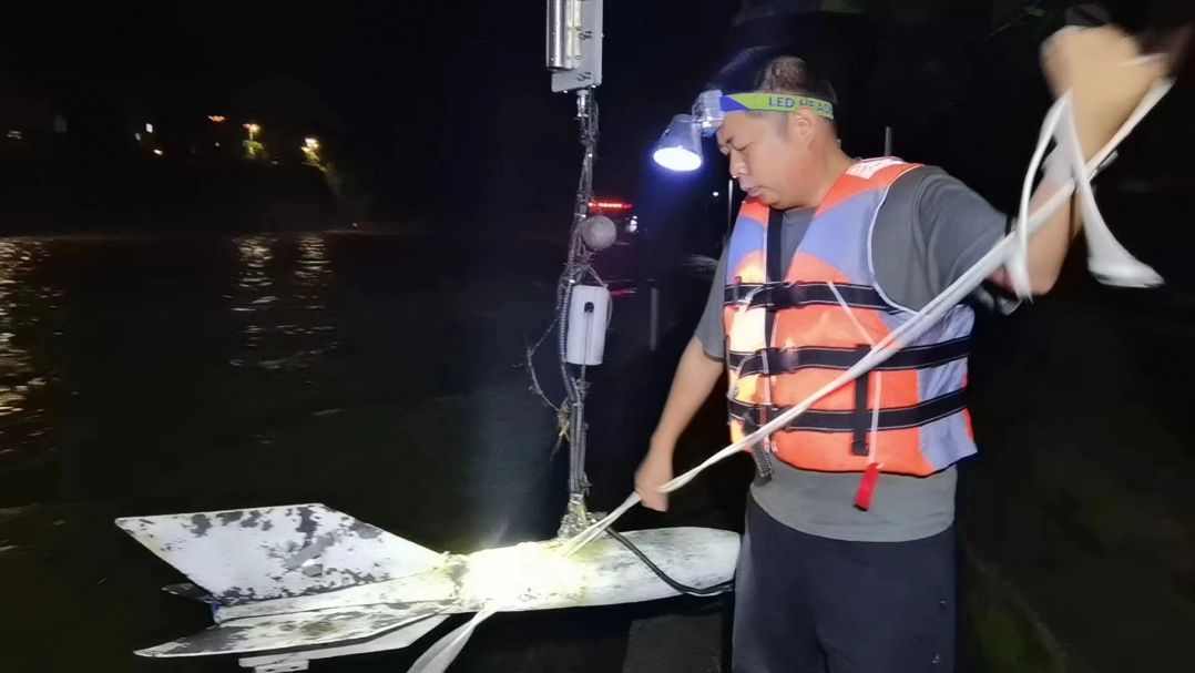 6月29日,黔东南州水文水资源局应急监测队员夜间在镇远县大菜园水文站测流。杨佳运 摄