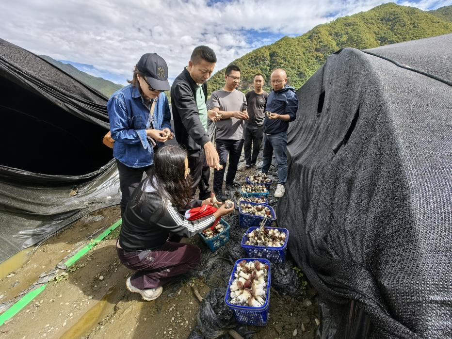 四川省国投现代农牧业产业有限公司范怀龚总经理对新开宗村的高原松葺、贡菜和试种的红毛五加中药材均表现了很大的兴趣,当场表示该国企将继续保持关注,有望借鉴新开宗村的产业成功模式,因地制宜在阿坝州开发高原特色中药材、菌类或蔬菜产品。