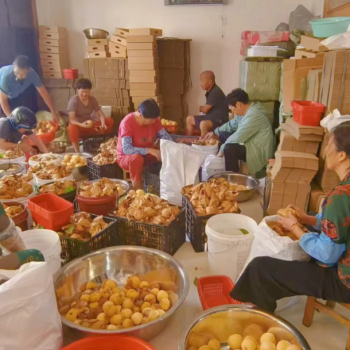 图3庄丰村农户清晨分拣白桃