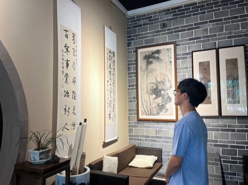 最后,团队成员们来到了梁平区书法家协会与梁平区美术家协会参观访学活动。还未走进协会,便已能看见大门两侧苍劲有力的书法作品,踏入门内,各种风格的艺术作品让人为之惊叹,在书法家前辈龙蛇飞动的笔下,一撇一捺都彰显着书法艺术的独特魅力,在艺术家前辈妙手丹青的绘画艺术中,生动地展现了艺术前辈们对美的独特理解和伟大追求,团队成员们对这种震撼人心的艺术瑰宝连连称赞。