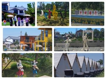 “鹊巢青筑”实践团来到鑫锋村开展社会实践活动,通过深度访谈、实地考察和活动体验等形式进行调研,围绕乡村振兴学习鑫锋村音乐元素建设,解锁流量密码。鑫锋村中的音乐岛建筑,随处可见与音乐有关的庭院装饰物,以及利用高架桥下空间打造的桥下律动公园内的户外敲打乐器、“多巴胺”集装箱装饰,都让这个“音乐村”独具韵味。同时,鑫锋村设有农场,可以在不同的季节采摘应季水果蔬菜,比如二月的五色草莓,五月的甜美番茄,六月的爽口甜瓜等等。鑫锋村音乐主题和采摘相结合的模式给予了团队成员对鸦鹊村乡村振兴发展的新思路。